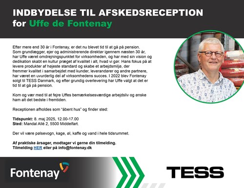 fremmer kvalitet i samarbejdet med kunder, leverandører og andre partnere, har været en uvurderlig del af virksomhedens succes. I 2022 blev Fontenay solgt til TESS Danmark, og efter grundig overlevering har Uffe valgt at det er tid til at gå på pension.